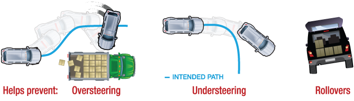 Helps prevent loss of control in curves and emergency steering maneuvers by stabilizing your car when it begins to veer off your intended path.