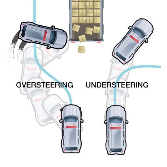 A series of sensors read the direction your vehicle is going, the position on your steering wheel and the brakes on your tires. If they detect that the car isn’t going in the direction you intended it to go, this feature helps correct your car back on-route by adjusting your speed and selectively braking one or more wheels. Without ESC, as this image shows, you may depart the road or get into a crash.