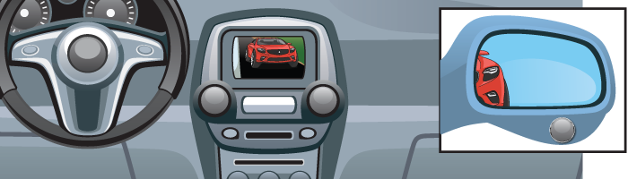 This feature shows you a video view of what is next to – or coming up alongside – your car.